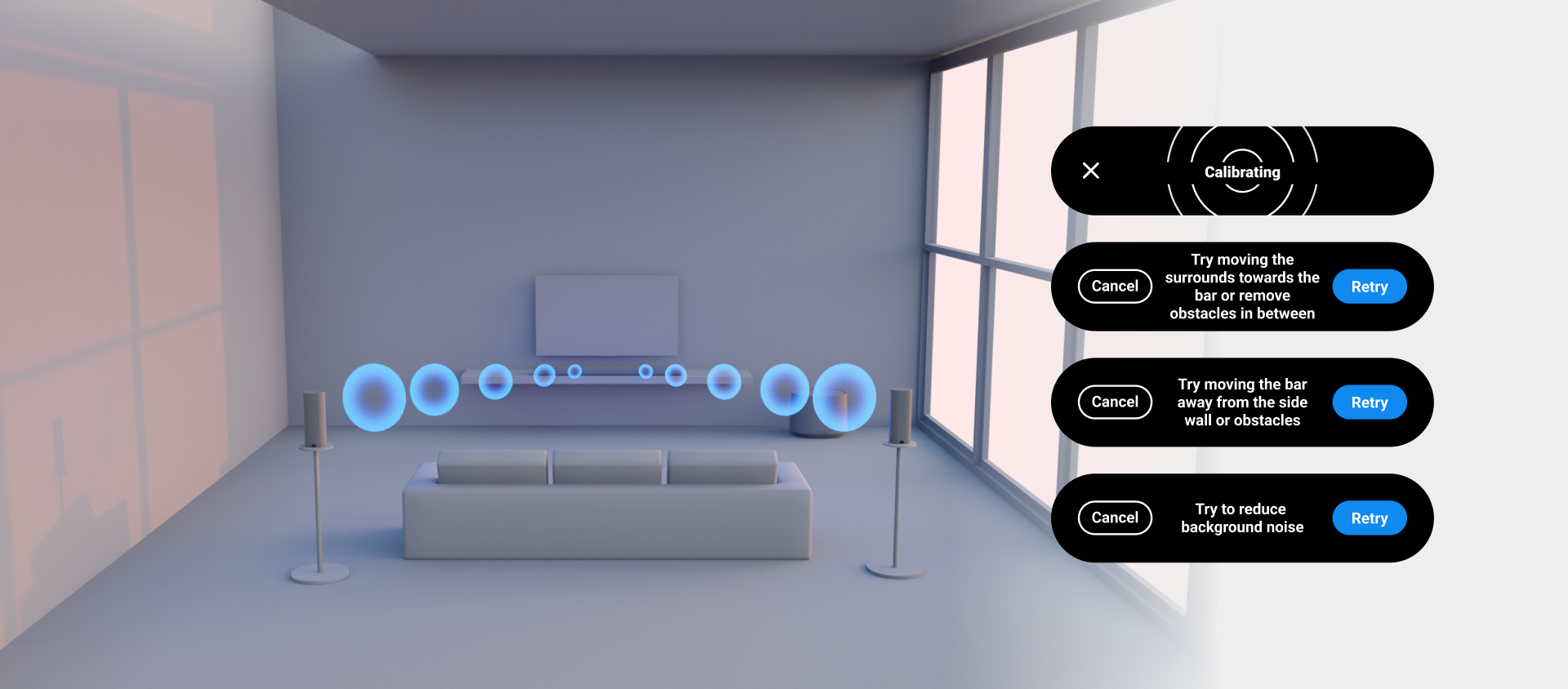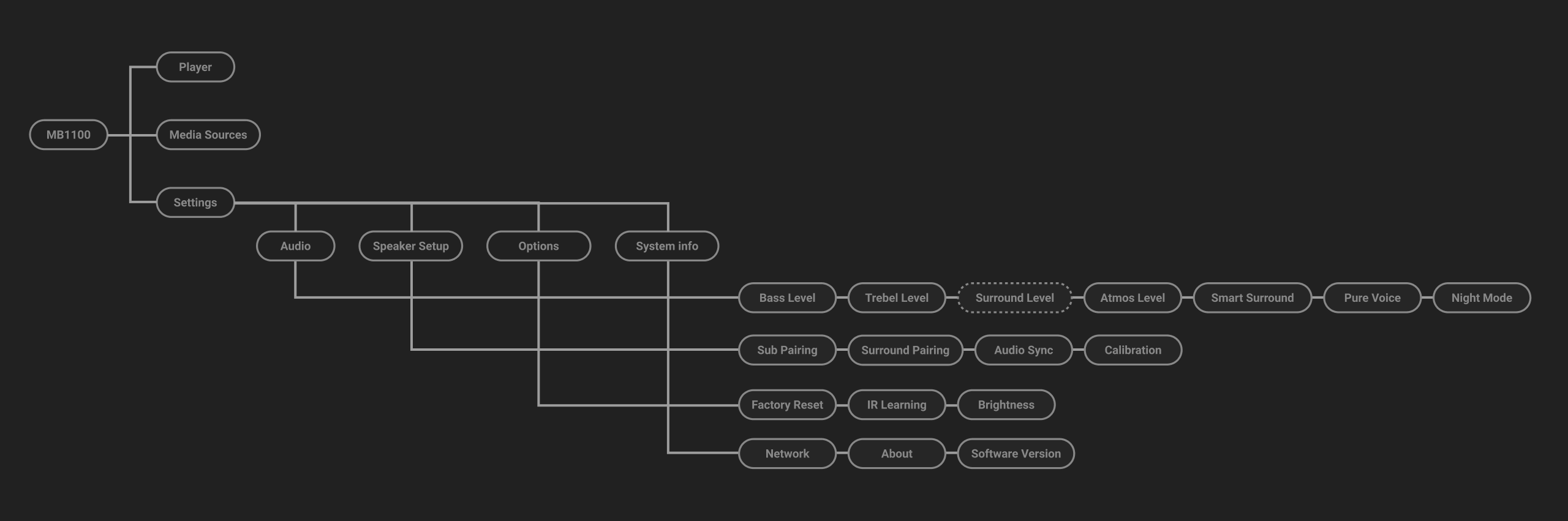 We designed a whole set of screens which with bigger elements and LED animation feedback for the user seat on sofa and use the remote control