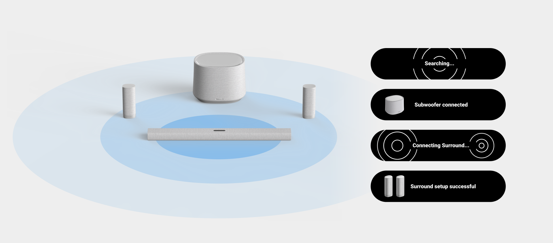 Pair the subwoofer and surround together and assign the left and right channels automatically