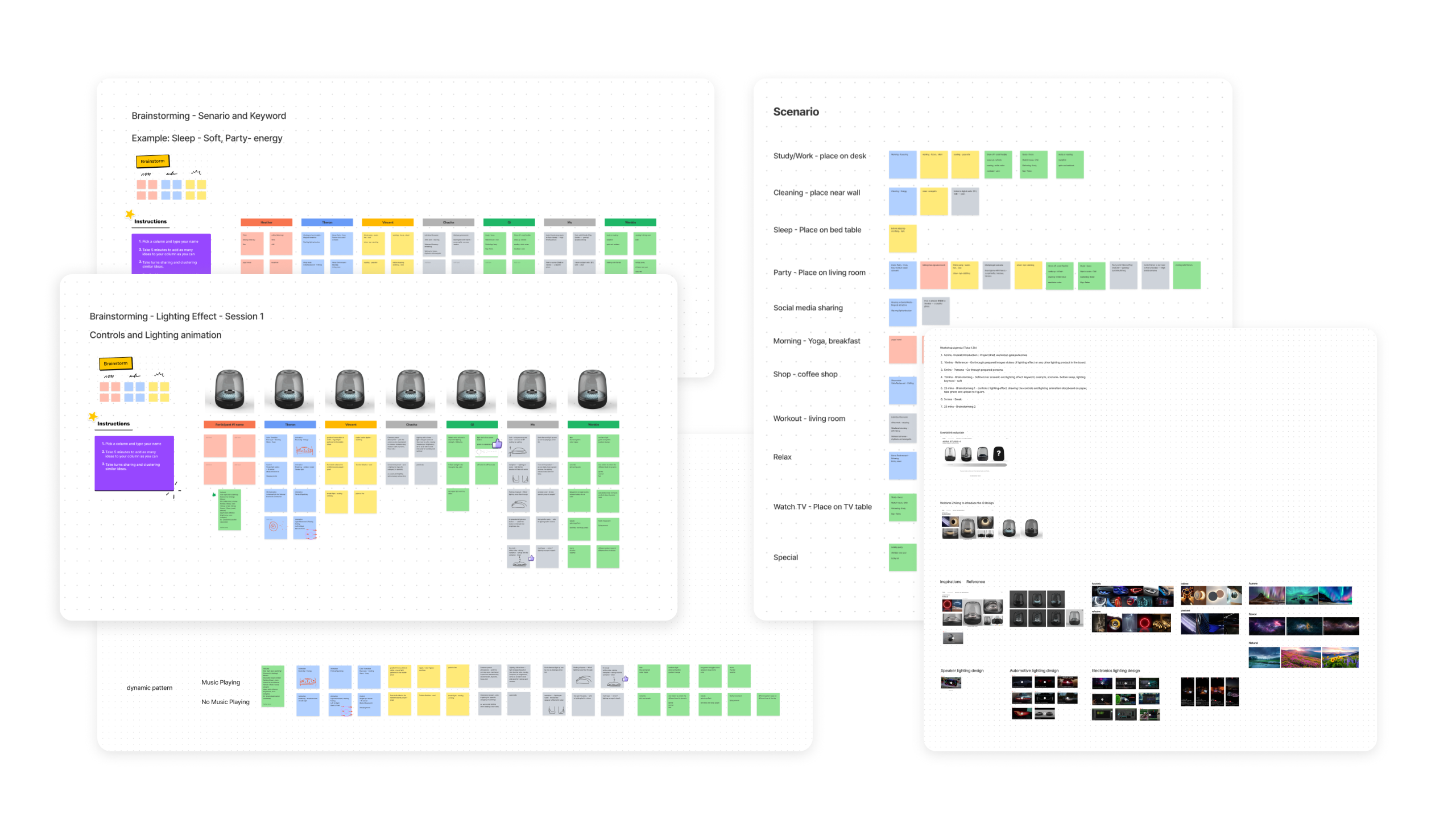 In order to come up with innovative ideas, a workshop is conducted with creative people with diverse backgrounds including mechanical engineers, acoustic engineers, product managers, industrial designers, and UIUX designers.