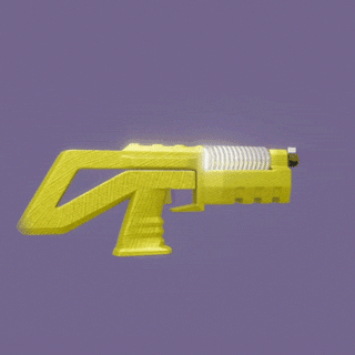 The laser beam in the barrel reacts to the horizontal level of the user's phone.